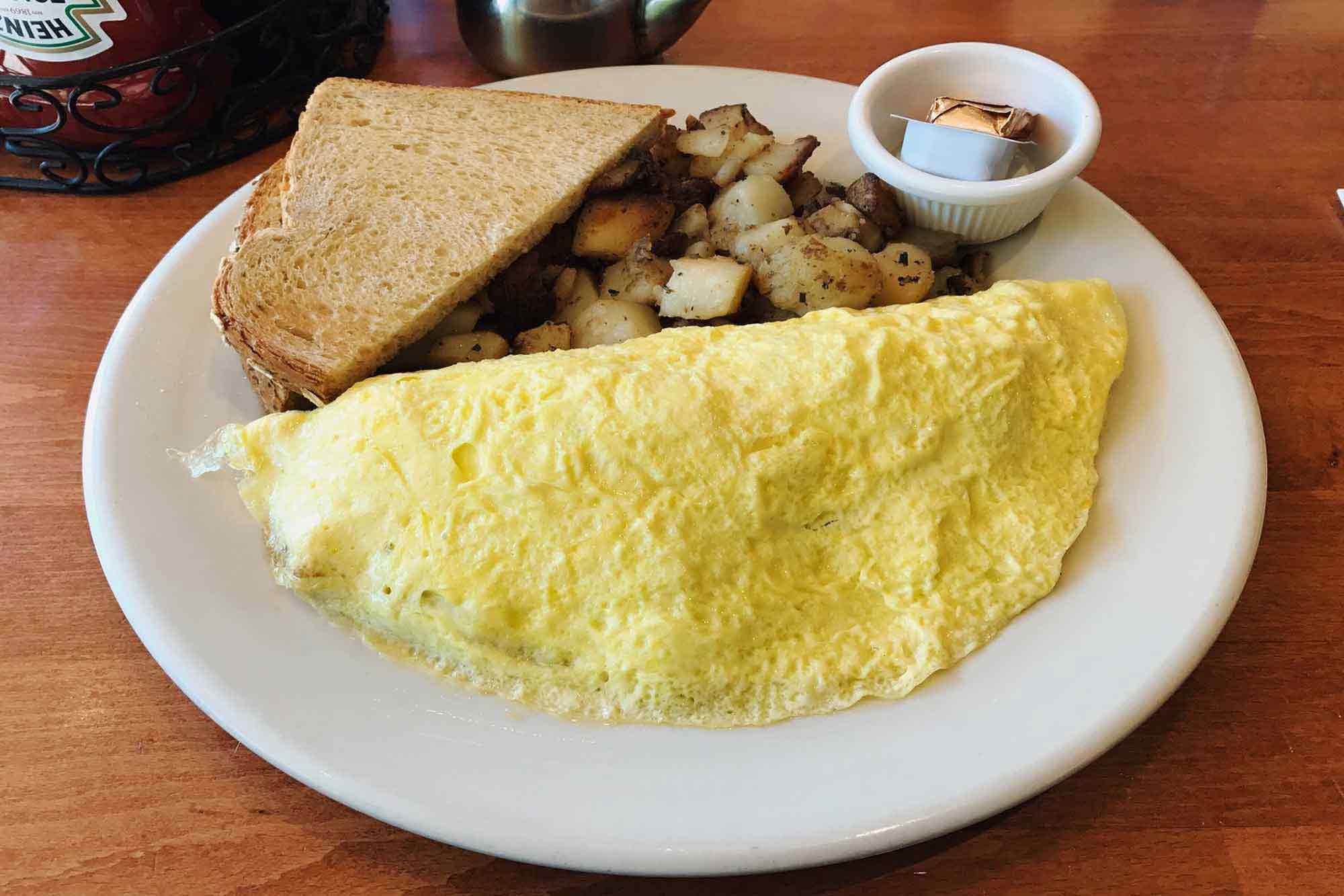 This “scrambled egg” approach is easier and yields a better result without having to worry about raw egg in the middle. Today’s omelette recipe is filled with ham and cheese. Sauté your ham first!